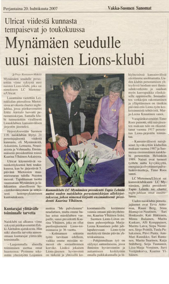 Vakka-Suomen Sanomat 3.6.2011: " Tapakoulutusta peruskoulunsa päättäville"